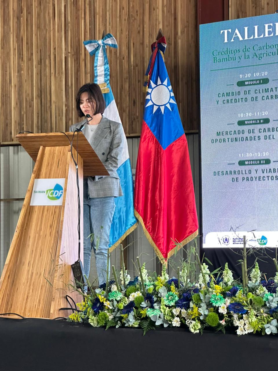 En su intervención, Fedra Chan, la Ministra Consejera de la Embajada de la República de China (Taiwán) en Guatemala indicó que Guatemala es uno de los países más vulnerables a los efectos del cambio climático, pero al mismo tiempo cuenta con abundantes recursos naturales y un gran potencial para el desarrollo de soluciones basadas en la naturaleza. En este contexto, el bambú y los créditos de carbono representan una alternativa clave para integrar la protección ambiental, la adaptación al cambio climático y el fortalecimiento de la economía rural, en concordancia con los principios de cooperación sostenible promovidos por Taiwán.